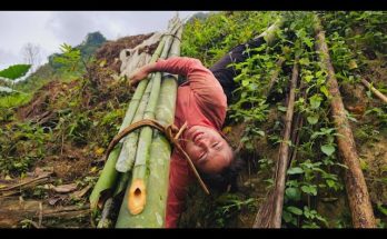The mother and daughter went together to collect palm leaves to rebuild the chicken coop./văn Nải Read MoreCut giant bamboo to make chayote floors.