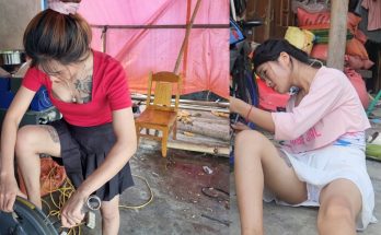Slicer repair, motorcycle repair, beautiful repair girl