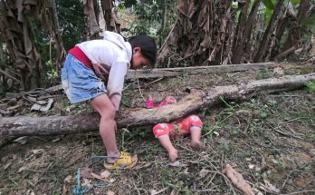 Single mother takes her child into the forest to find things to sell to feed her child Read More